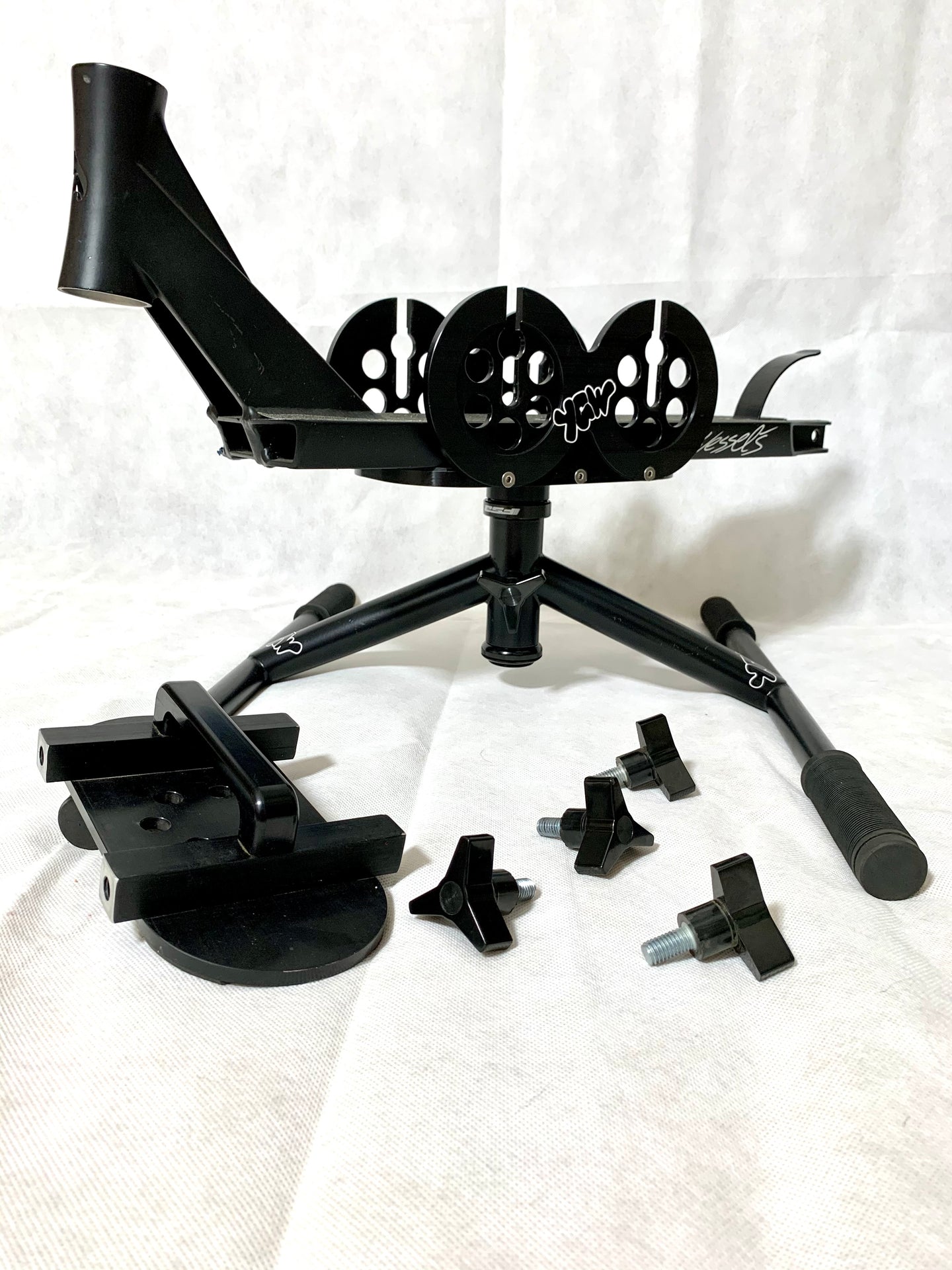 YGW Scooter stand offers riders the opportunity to work on and build their scoots without having to support it on their own, giving you free hands and body movement without the hassle of supporting the scooter while trying to work on dialing it in  !
